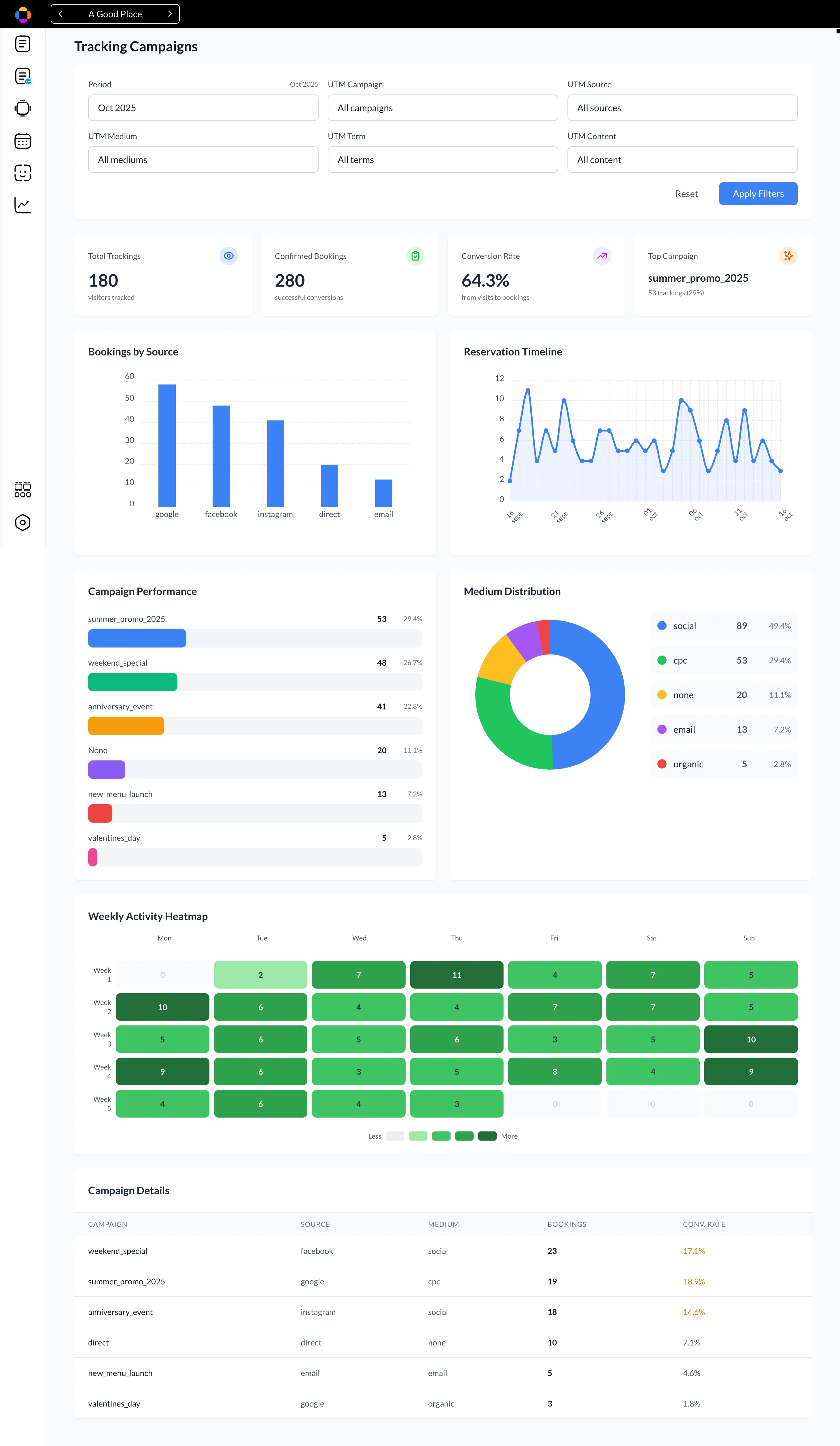 - Measure campaign performance: Know which ads or channels bring real reservations.